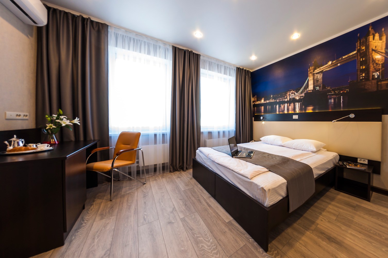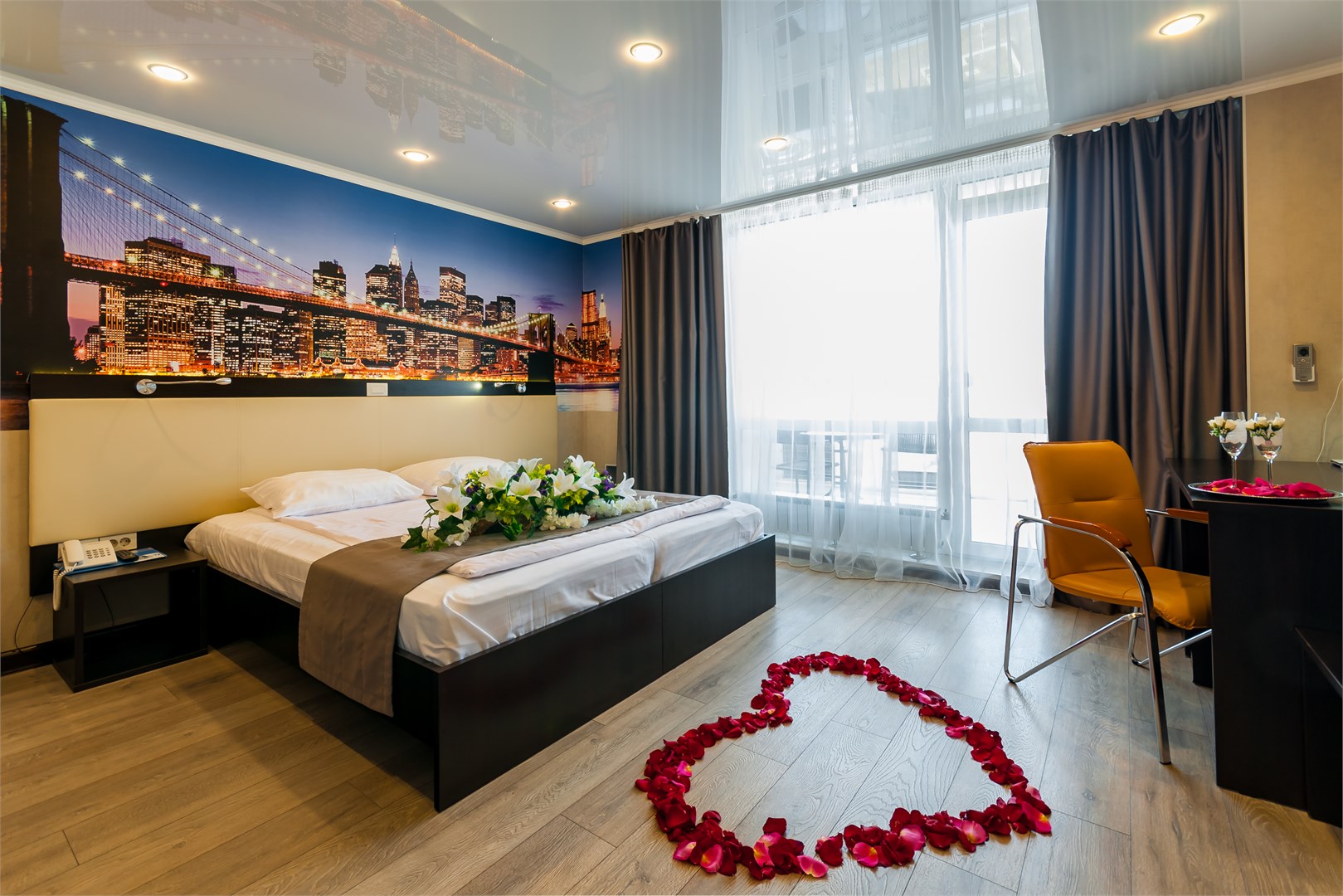 Номерной фонд разного уровня комфорта и вместимости расположился на самом верху 16-этажного здания. Комнаты полностью мебелированы. В них есть телевизор, Wi-Fi, кондиционер, мини-холодильник. Санузел с душевой, полотенцами, тапочками, туалетными принадлежностями. С панорамных окон открывается великолепный вид на город и реку. В распоряжении гостей есть общая мини-кухня, где можно сделать горячий напиток и перекусить. Отдохнуть рекомендуется в уютно обустроенной лаунж-зоне или на террасе. Внутренние помещения и холлы отеля находятся под круглосуточным видеонаблюдением. Дополнительно гостям предоставляются услуги прачечной. Личный транспорт можно оставить на парковке возле здания.
